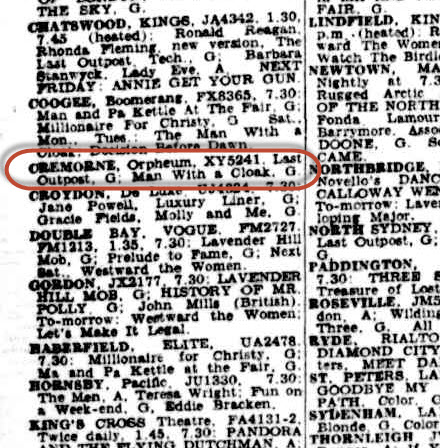 Around June 1950 Cremorne Orpheum changed it's telephone number (as indicated on each poster snipe) from XM1441 to XY5241